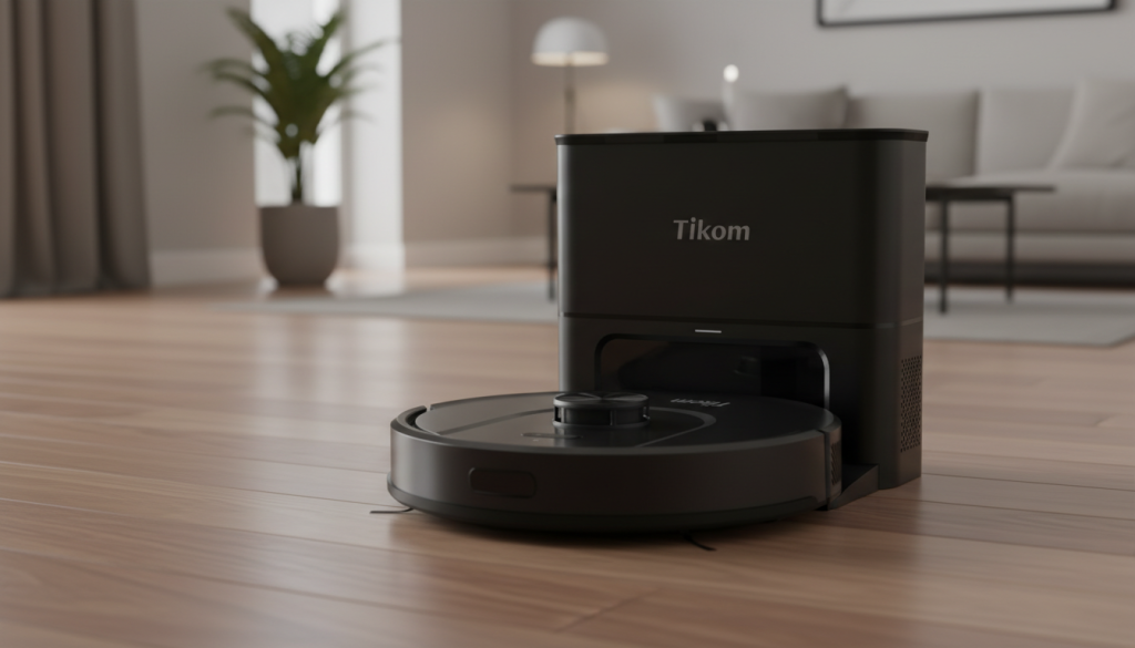 The Tikom L8000 Plus focuses on the upgrades that make robot cleaning feel effortless: LiDAR mapping + a self-empty base. On hardwood, it’s great for everyday dust, hair, and crumbs. The mop function is best for light refresh passes rather than deep scrubbing.